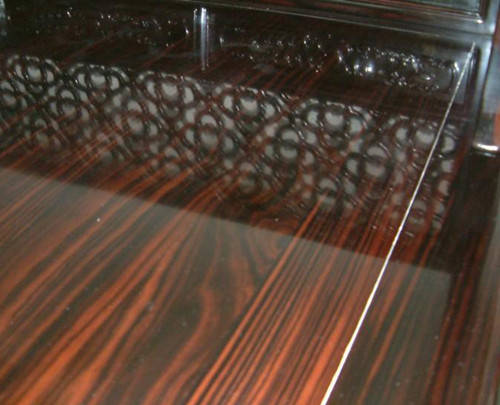 有些产品虽然是用红木制作,但是,经过仔细检查,则可以发现其产品是将红木劈开成薄片,贴在其他木材的表面伪装而成的,并非是真正的纯红木家具。