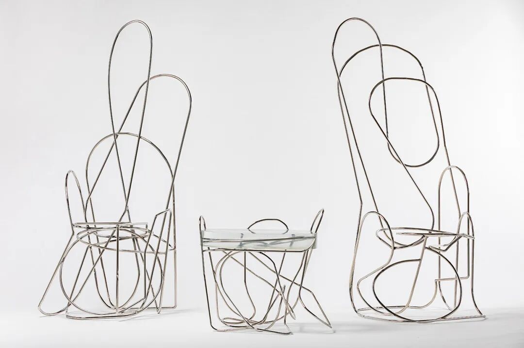 如果你仔细观察,这些家具看起来就像扭曲的回形针。它就像是在工作中闲置了一天,只是无聊坐在那里扭动和摆弄回形针,创造出独特的装置。