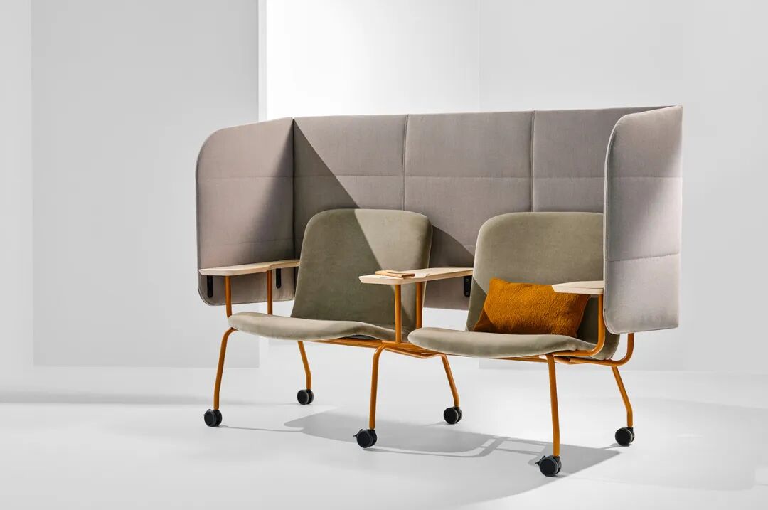 Hybe系列的主要特点是多功能性,因为它提供的座位区和会议空间可随时满足你的需求。家具系列包括单人至双人座椅和封闭式展位。它们都配备了轮子,以创造出既可移动又灵活的座椅解决方案。隔断屏幕可以连接到单人和双人座椅上,将它们变成隔音隔间,作为私人和隐蔽的工作空间。椅子配有脚轮或旋转底座。
