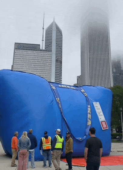 图片来自:TikTok@icedtina6 月 17 日,大蓝袋子来到第一站芝加哥千禧公园;6 月 24 日,宜家又把它带到了休斯顿绿色探索公园;不久之后,它将在纽约亮相。存在感之高让路人无不驻足,自然而然成了网红打卡点。