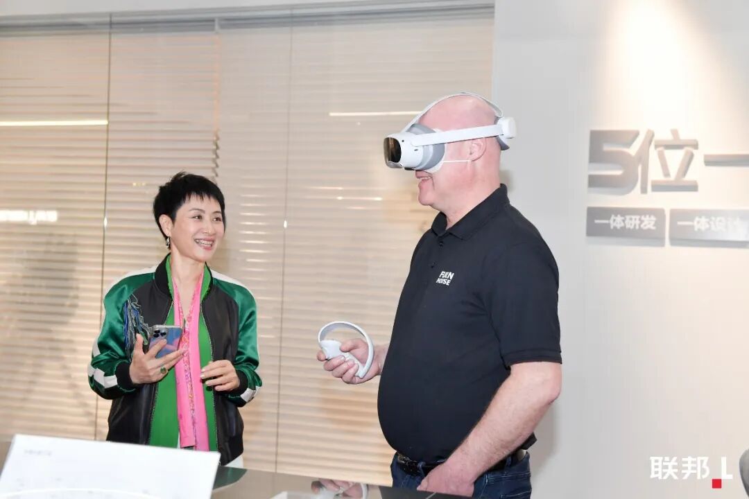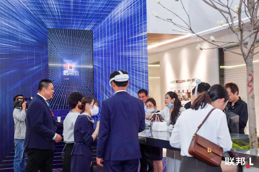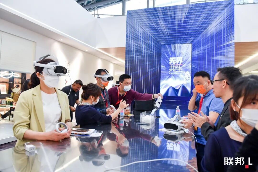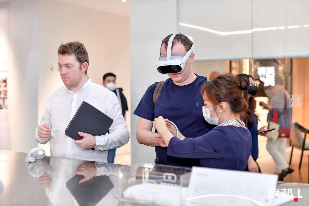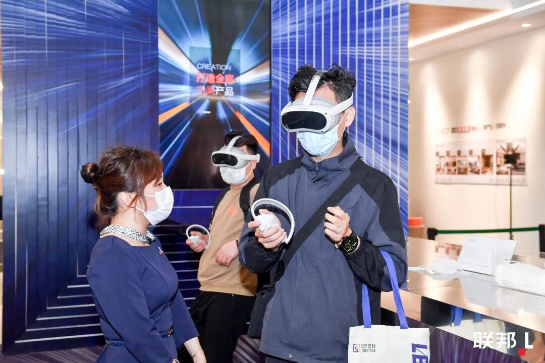 展馆中庭,联邦还推出了结合AR/VR技术的“心象素生活空间虚拟场景”,客户戴上AR/VR眼镜,就能即时“走进”房间体验方案效果,还可以在其间自由走动、更改产品颜色、查看产品细节和参数等,相比以往更全面、真实地实现“所见即所得”的体验。未来,这一技术也将会在联邦的更多终端门店铺开应用。