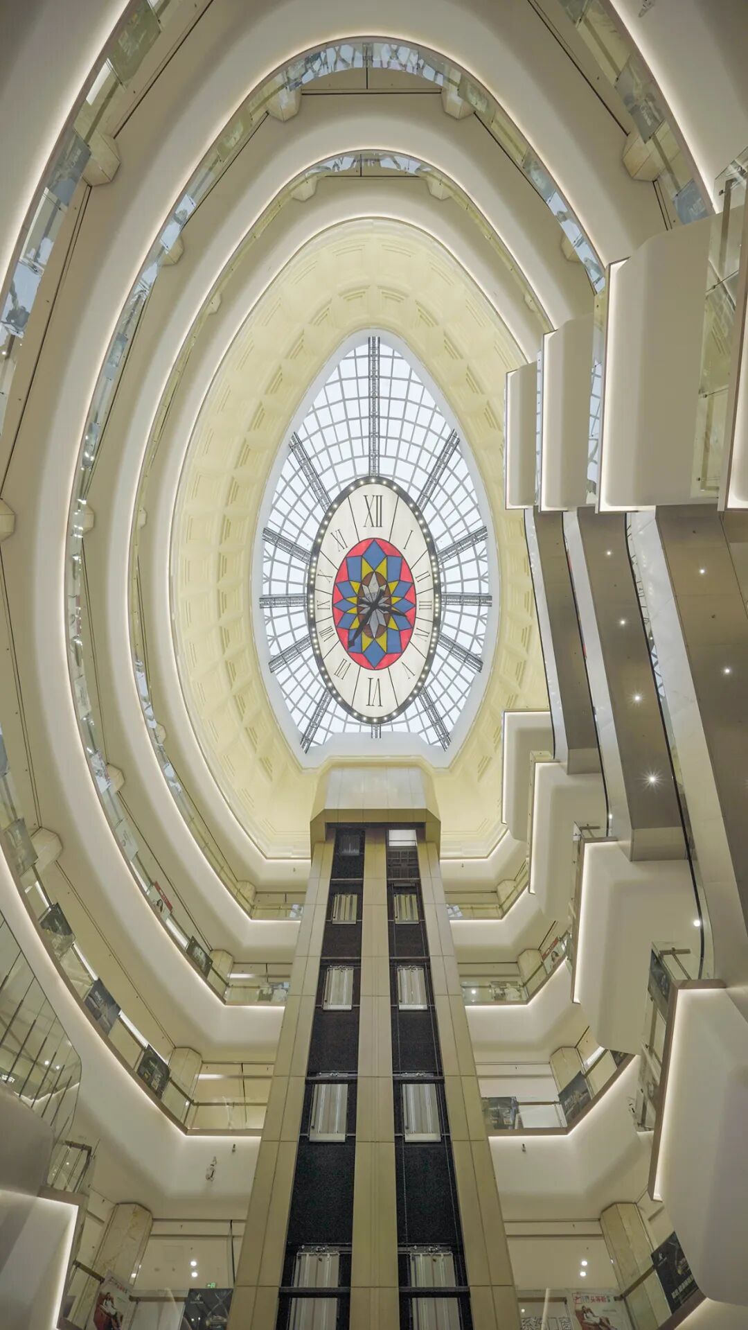 抬眼一望,又被中庭顶给美到了。据悉,项目中庭顶部采用艺术文化产物“巨型罗马大钟”装饰,构建出一座包含国际艺术的家居殿堂。