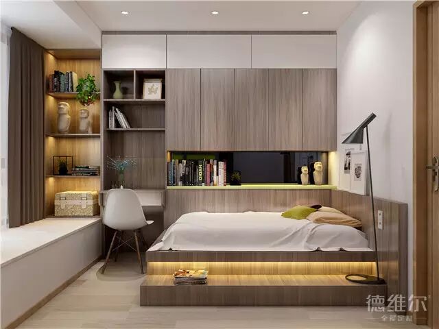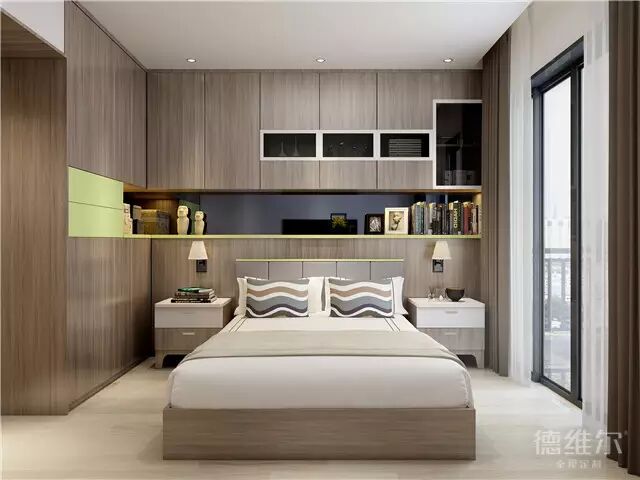 衣柜与床头背景柜的融合,完美无缝衔接,释放超强储物能力,可收纳一整室物品,时刻保持卧室的干净整洁。这样的卧室还需要你去费尽心思去整理吗?