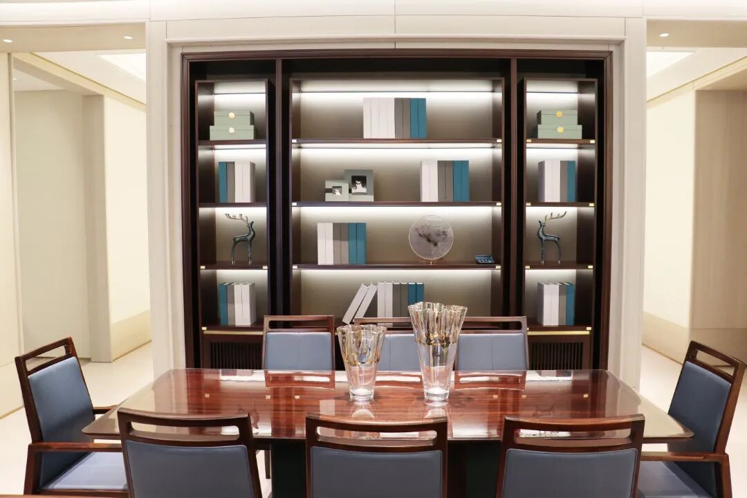 臻于细节,精于品质。精研装饰艺术,多元高阶材质荟萃,兼容时尚之选,铜饰工艺、镂空工艺、圆角工艺、实木拼花工艺、皮木契合工艺等,细微之处皆是用心,时间的年轮,匠心的磨砺。
