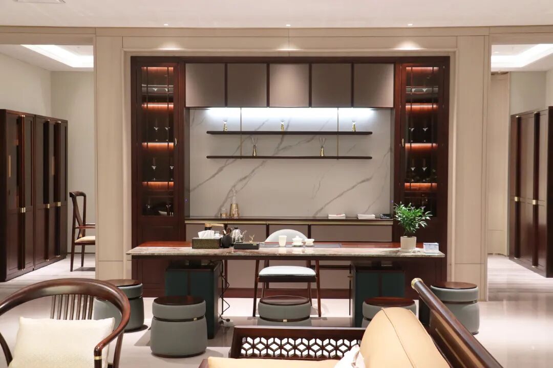 圣贤之地承文化之风,礼仪之邦更重待客之道。端正大方造型以彰礼序正统,简练造型去除繁缛,注重现代心明几净的理念,结合五金等多元材质,碰撞出别样美感,正如金风玉露一相逢,便胜却人间无数。