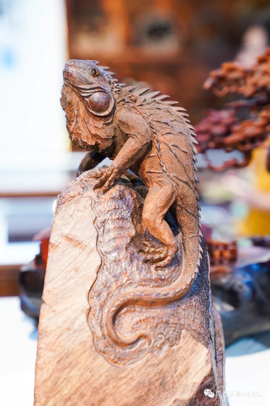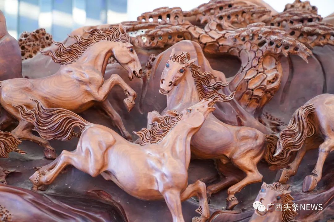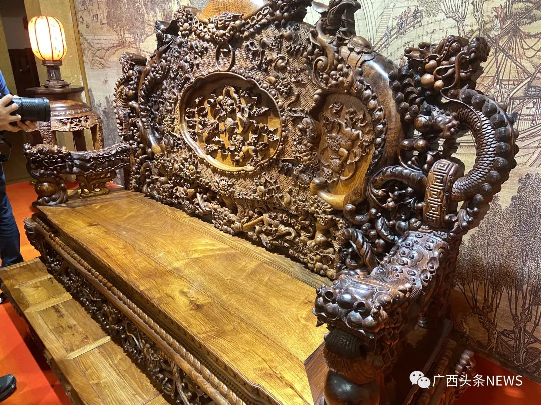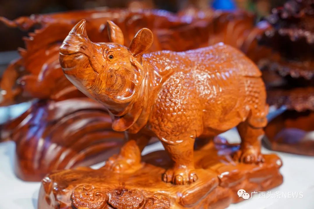 红木文化博物馆。陈冠言 摄这些造型奇特的红木作品你见过吗?走进红木文博城,纵观各类红木制品,上面的图腾、纹饰既有东南亚特色的文化符号,也有中华传统文化元素蕴含其中。“这是中国和东南亚长期贸易往来和人员交往频繁的特色产物。”广西红木文化研究会常务副会长、广西大学教授李英健介绍,中国红木家具原料产自东南亚,其设计既保留中国风特色,又在一定程度上吸收了东南亚的文化元素。而在东南亚生产的红木家具,其切割雕刻工艺受到中国的影响,在纹饰和动物图样上,也出现了当地民众钟爱的款式。