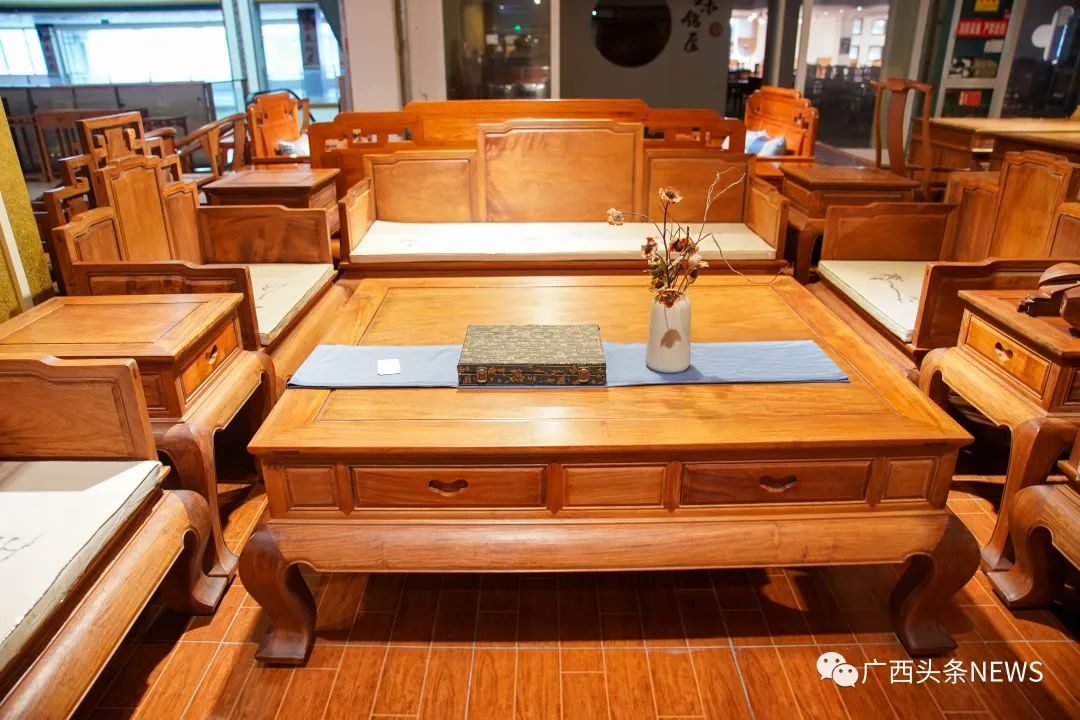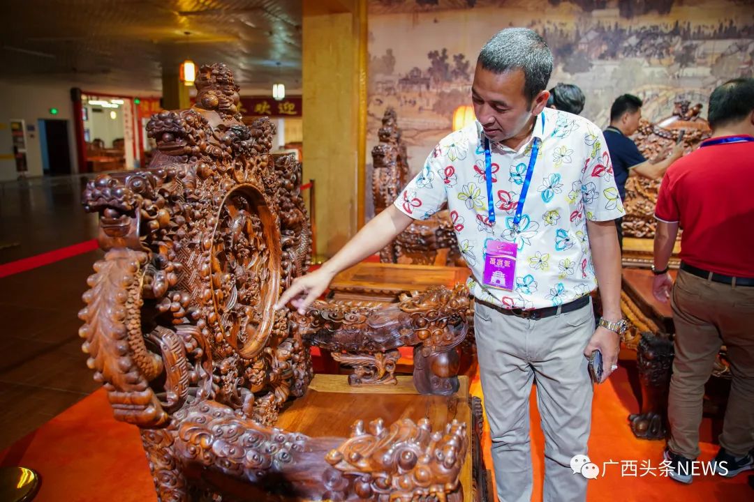 红木文博城。陈冠言 摄这里是“中国红木第一城”据了解,中国红木家具起于明,盛于清。郑和下西洋后,从东南亚、印度等地带回诸如黄花梨、鸡翅木和铁刀木之类的红木。随着明代手工业技术大大提高,明清红木家具制造业进入了空前繁荣的时代。经过六百多年的历史演变,红木家具由最初的帝王将相、达官贵人才能使用,到如今渐渐融入老百姓的生活,体现着中国人的文化象征和历史底蕴。据凭祥市红木文化商会秘书长谭烈成介绍,东南亚是中国最大的红木原材料来源地,为了降本增效,凭祥部分商家会派工匠师傅到东南亚,指导当地木工熟悉中国红木工艺,熟练使用中国机械设备。广西凭祥是中国距离越南红木集散地北宁省最近的城市。凭借得天独厚的区位优势,凭祥大力发展红木家具,当前登记在册的商家有3000多户。凭祥红木家具已由过去的家庭作坊逐渐发展壮大,形成标准化、规模化的产业模式。当地还于2011年建成红木文博城。作为全球迄今为止规模最大的红木家具及工艺品专业市场,红木文博城以其浓厚的中国传统红木文化氛围,吸引众多东盟各国友人前来考察、旅游,也被称为“中国红木第一城”。