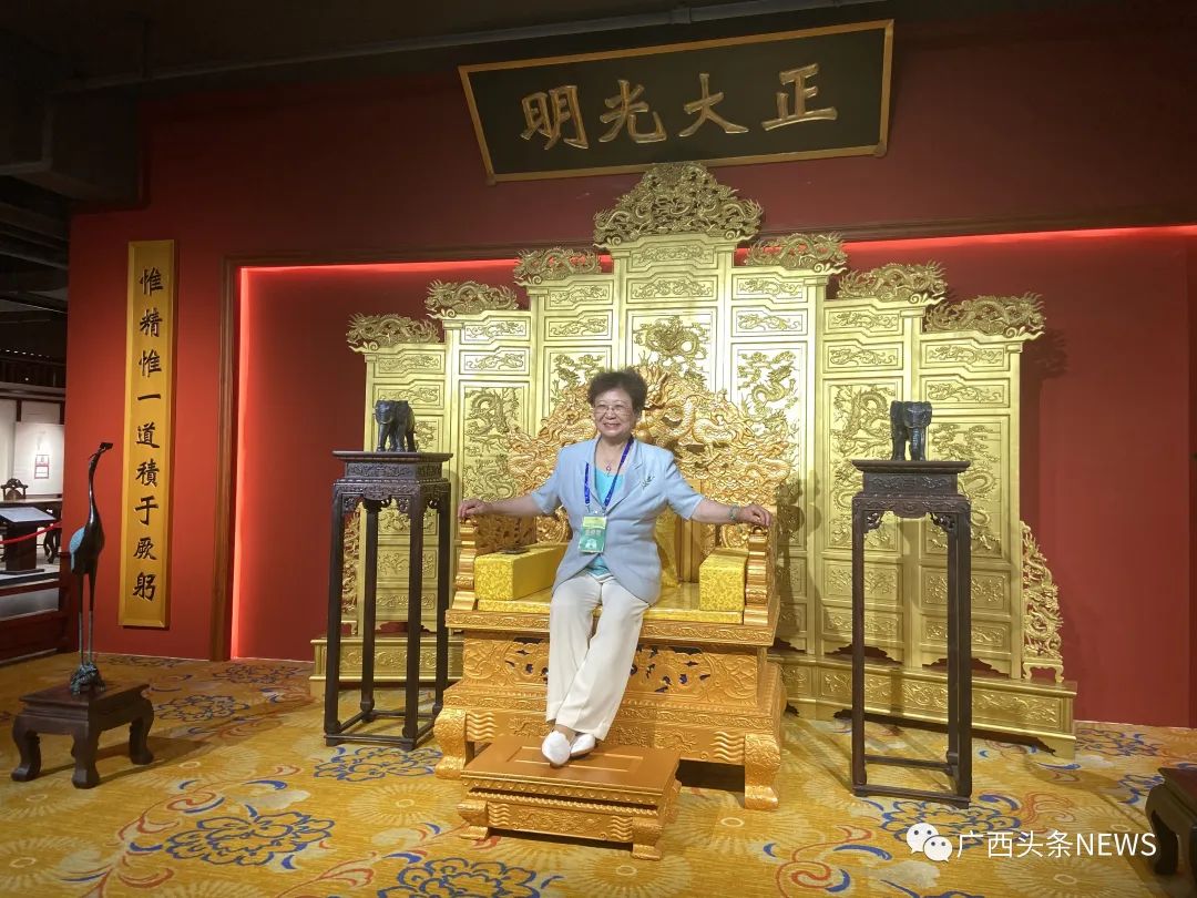 媒体代表体验坐“龙椅”的感觉。林洁琪 摄