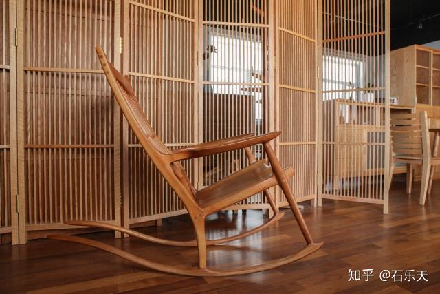 还有一把大象椅,看上去和普通椅子差不多,其实背板和坐板都从人体工学角度考虑,挖了一个弧形出来。再仔细看,你会发现背板截面接缝不是一般的直线,而是闪电缝,和直拼比起来更不容易开裂。