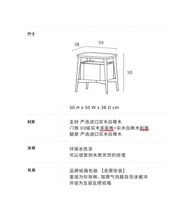 之前有一个朋友问我关于木材的问题,给我发了淘宝上一个床头柜,是网上算比较知名的品牌了。