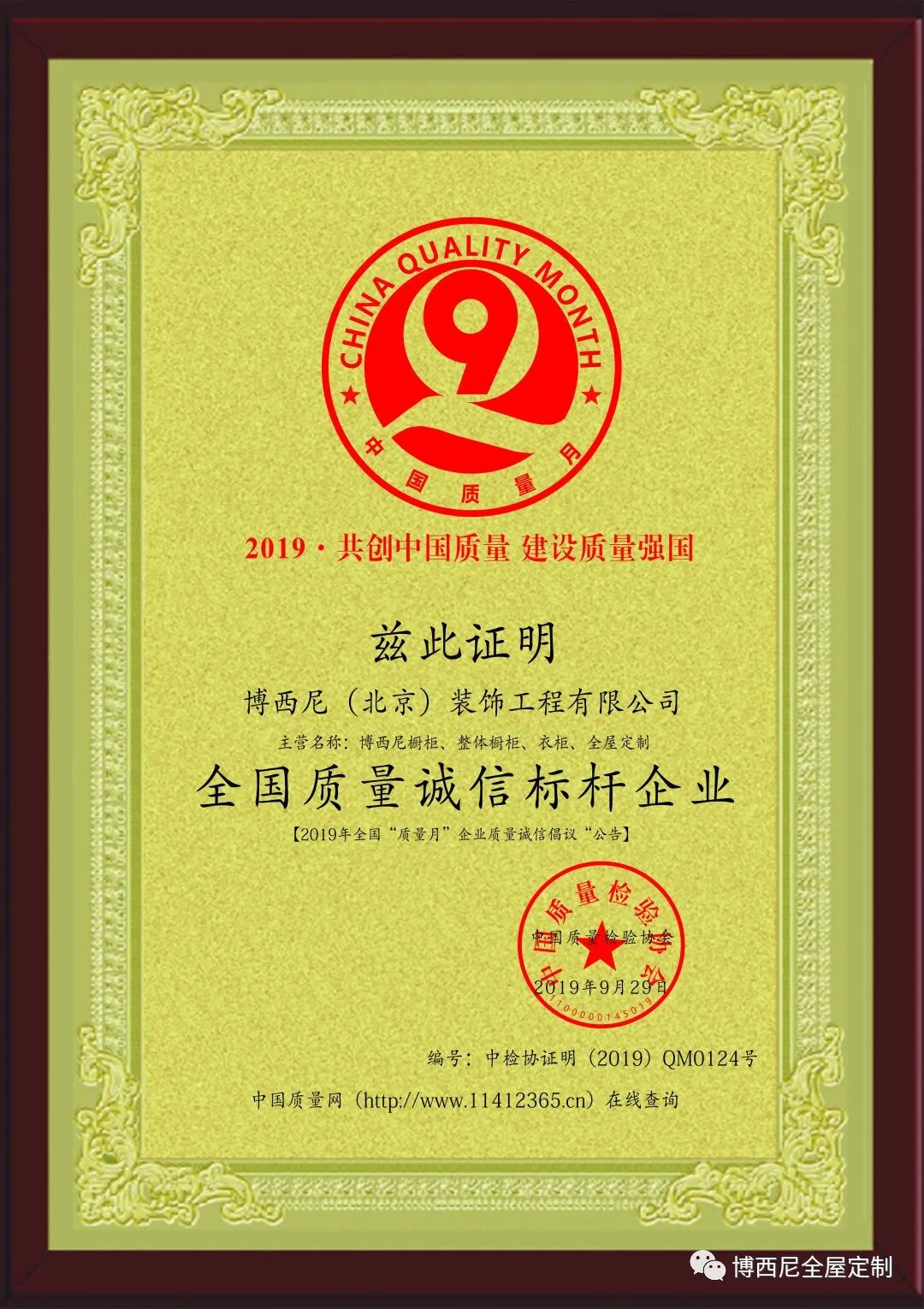 产品质量好,消费者用着才放心,一个企业能长久立足的根基就在产品质量,一个好的品牌必须把产品质量放在首位,而产品质量方面我们可以从品牌的板材使用、制作工艺、五金配件等方面去判断,具体可以到品牌的制作工厂去观察了解。博西尼全屋定制连续几年荣获“全国质量诚信标杆企业”、“全国家居建材行业质量领先品牌”,国家认证,质量有保障。