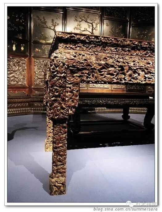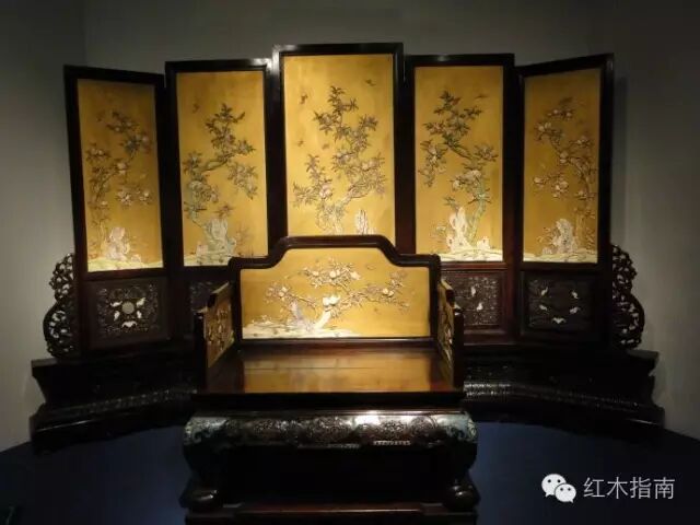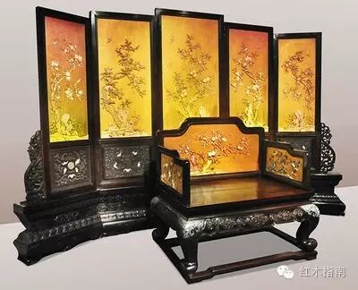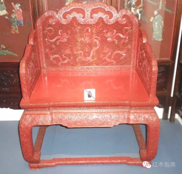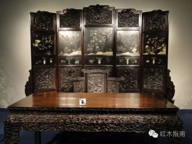 清代红木框雕漆地嵌玉石围屏,剔红雕九龙纹宝座
