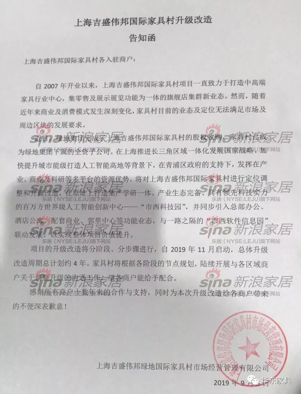 就是这份上海吉盛伟邦国际家具村(下称“家具村”)向商户发出的告知函,开启了家具村关停倒计时的生死时速。