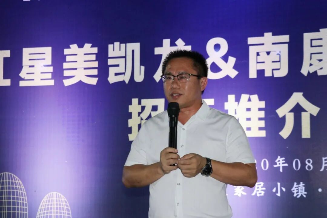 区家具产业促进局局长李庆伟在会议上讲话,从南康家具产业的发展和红星美凯龙组织的此次重要调研表达分享了自己的几点感受,一是先了解后合作,此次红星美凯龙的调研路线是精心安排,旨在加强红星美凯龙对南康家具产业的全面了解,为后续合作打下坚实基础。二是南康家具具有超高性价比众所周知,产业链完善,生产环节分工细致,赣州港、共享喷涂、备料中心等公共平台完善,企业主文化水平不断提升等是南康家具降低成本,打造出高性价比、高颜值、高品质产品的重要因素。三是南康家具品牌的树立,近年来,南康家具大力推动品牌建设,南康家具品牌的身影不断出现在各大展会平台,品牌知名度和美誉度不断提升,彻底打破了以往的形象。南康家具品牌企业要对品牌和红星美凯龙有充足的信心,双方要互相加强了解,合力打开互助互赢的友好局面,深度融合,开展精准、长久合作。