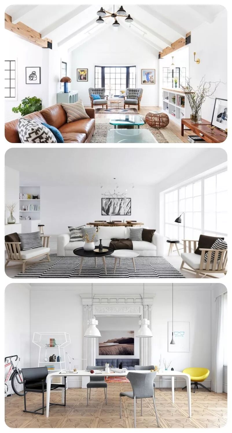 最为极简主义后现代风格的“北欧风”,室内的屋顶、墙面与地面整6个面完全不用其他图案来装饰,只用最简单的色块与线条来区分。