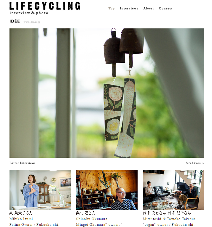 日本家具品牌IDÉE的线上杂志,定期采访精心挑选的职人和他们的别具风格又实用的生活空间,梵几现在做的线上杂志就很像LIFECYCLING的模式,PS:目前已经有出版实体书《Lifecycling永续生活》了。