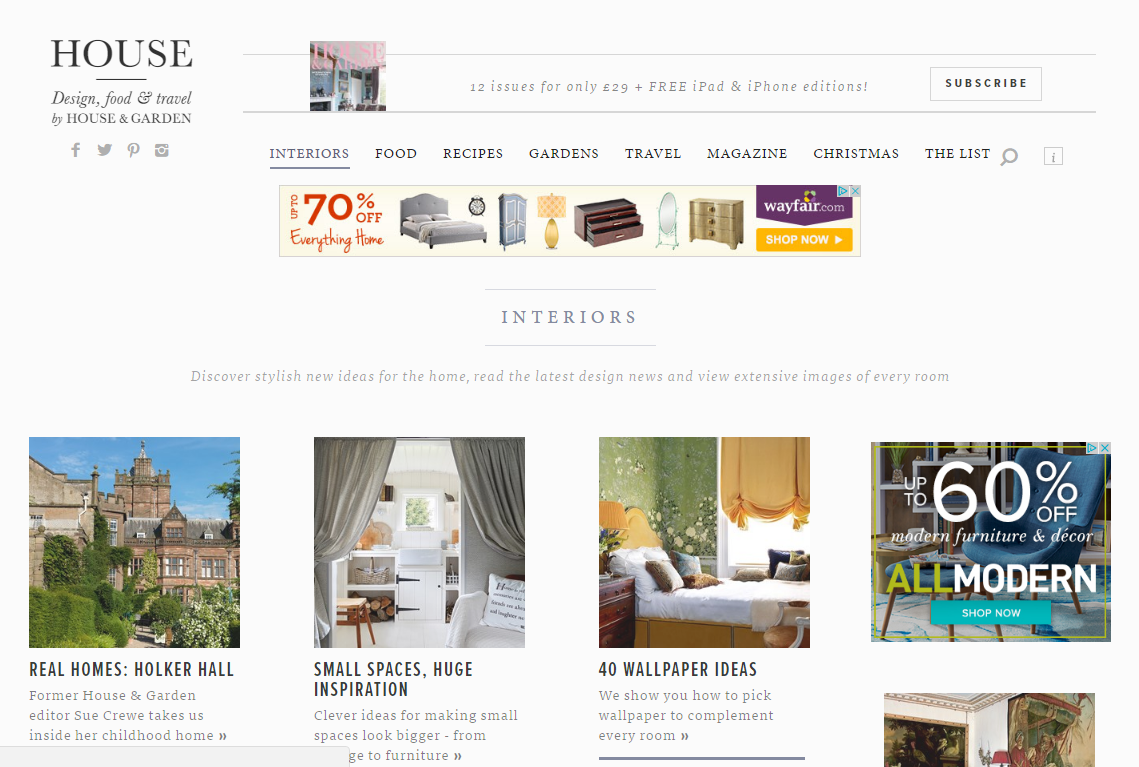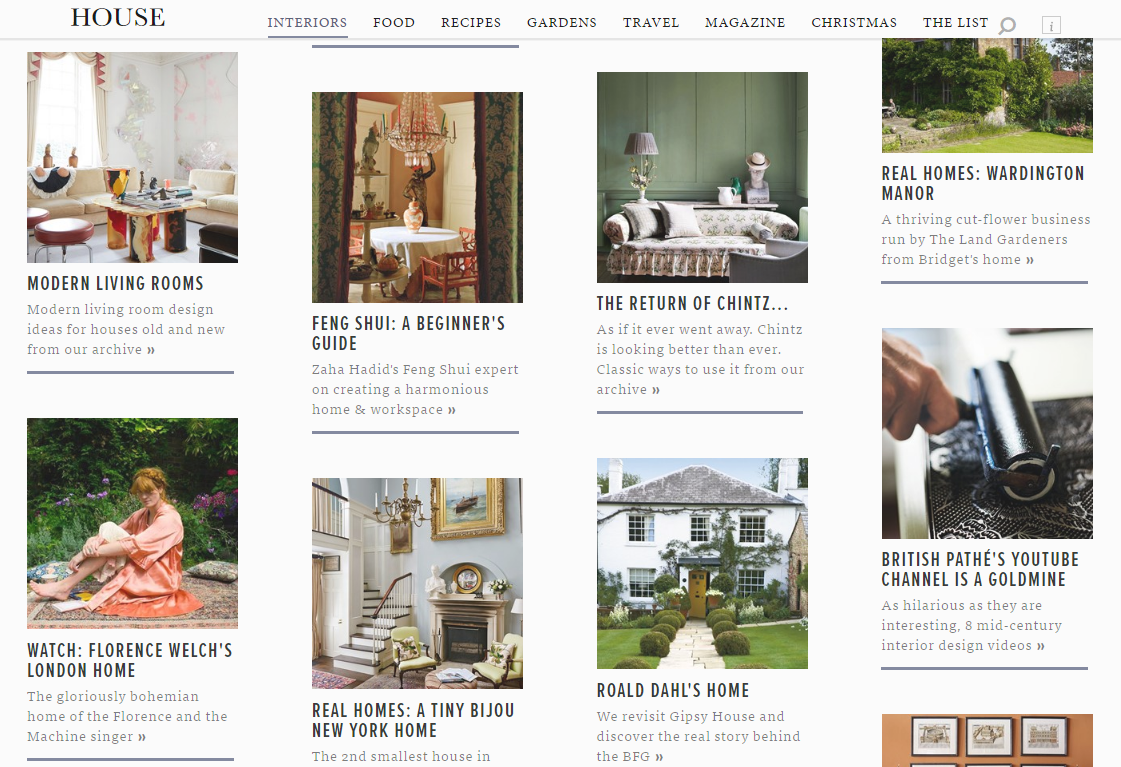 英国家居杂志《House & Garden》的线上网站,除了家居频道,饮食、花园和旅行的这几个频道也很值得一逛,家居的风格的话,自然多是偏英伦风情的,有乡村有复古,喜欢这一类的可以进。