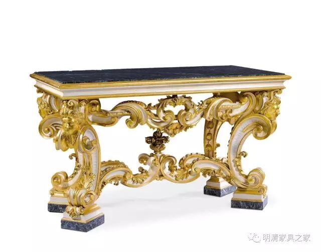 意大利 巴洛克风格木质鎏金配大理石台面大边桌