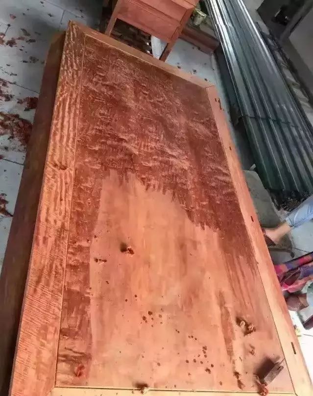 以上各种作假手段,看似粗劣,但是一旦做成品经过整体上色,画色,画纹理,最后喷上一层厚厚的油漆后,即便是行家都很难辨认得出来。一样光彩夺目,冠冕堂皇地进入大卖场卖得高价。这些作假手段特别用在贵重木材身上,比如大红酸枝。低档的木材一般不用这种手段,因为就是这些拼补也要耗费不少人工成本了。比如大众情人缅花这种木材,一般不会用这些作假手段了。而是另一种,相似木材冒充,相近木材高仿。以几千一吨的杂料、相似料,冒充几万一吨的真正缅花。同样令人触目惊心。待另文介绍。