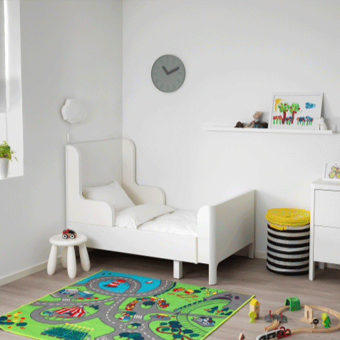 铺上坐垫和地毯,可供小朋友玩耍或阅读。宜家的库拉床因为造型简单、功能齐全,还深受很多IKEA Hacker的喜爱。