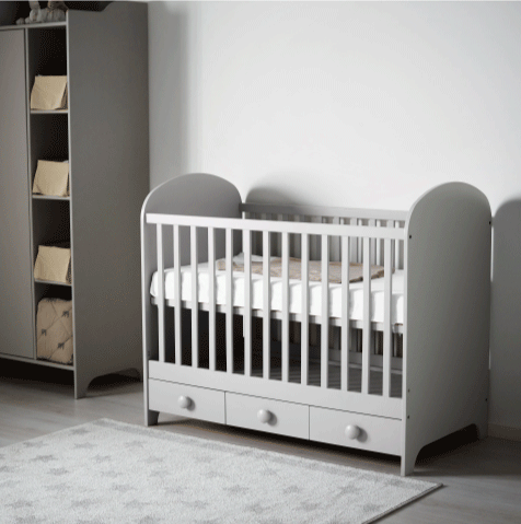 小宝贝在婴儿时期基本都在婴儿床里度过,宜家格纳特系列婴儿床有两种高度能调节,在小朋友还是小小婴儿时,第一个高度更方便家长照看,而第二个高度更适合1岁左右可以站起来自己玩耍的宝宝,有护栏更安全。
