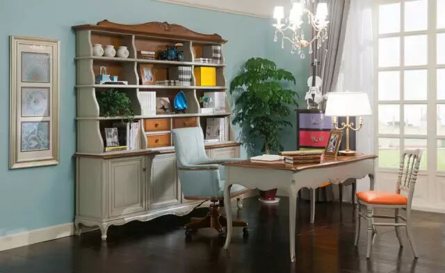 简练的直线线条,规整的矩形外观;简洁的贝壳纹饰;收缩的腿脚;部分家具表面的搽拭怀旧处理,都体现了新古典风格。