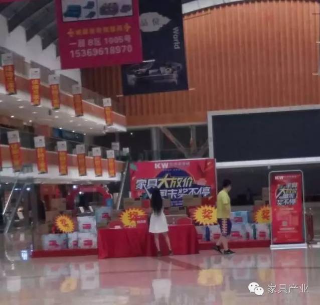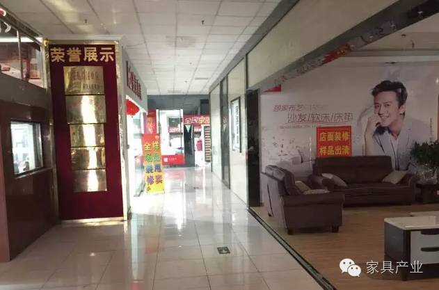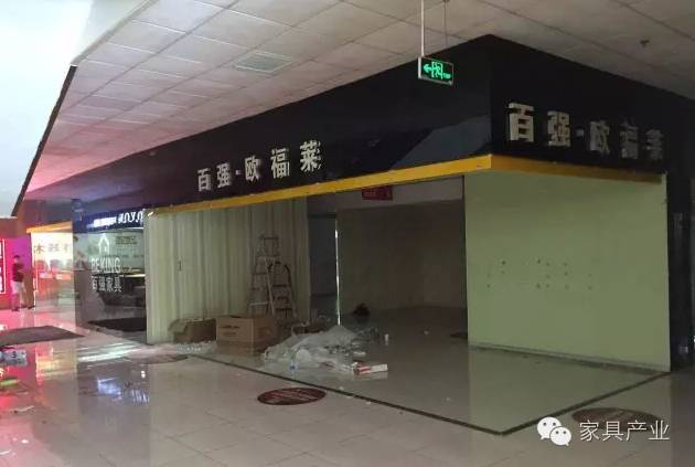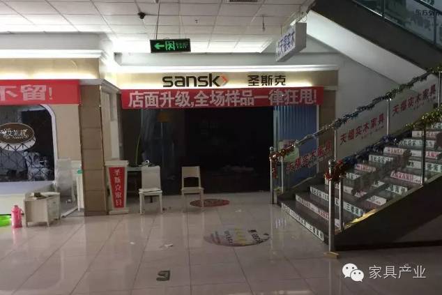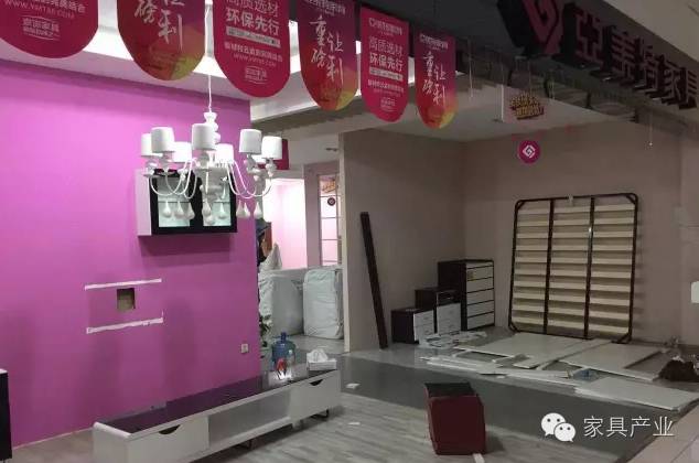 某知名家具城内凌乱空荡,到处张贴着“店面升级装修,全场狂甩”的字样: