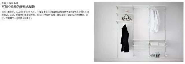 3ALGOT 艾格特、STOLMEN 斯多曼这两个系列之所以放到一起来说,是因为都是开放式存储系统。艾格特主要利用墙面加以固定,而斯多曼则是利用楼板进行固定。在应用上来说,艾格特可以借助一面墙壁来做开放式衣柜,外面罩以窗帘,即可以达到收纳目的。而斯多曼因为固定的是天花板与地面,因此可以作为隔断使用。当然,鉴于我们这里的环境尘土太多,因此,美好的梦想往往被现实打得粉碎。依靠窗帘很难阻挡落灰,鉴于此,选购前还请平衡美观与功能性。4VITTSJÖ 维特索你在很多北欧公寓的图片当中都能发现这个系列的影子,只是你叫不出来而已。