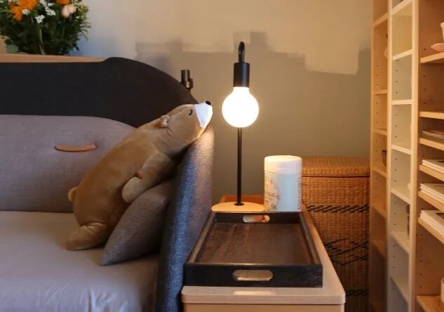 吊灯、落地灯和和悬吊床头柜则是竹制,分别购自淘宝和宜家。