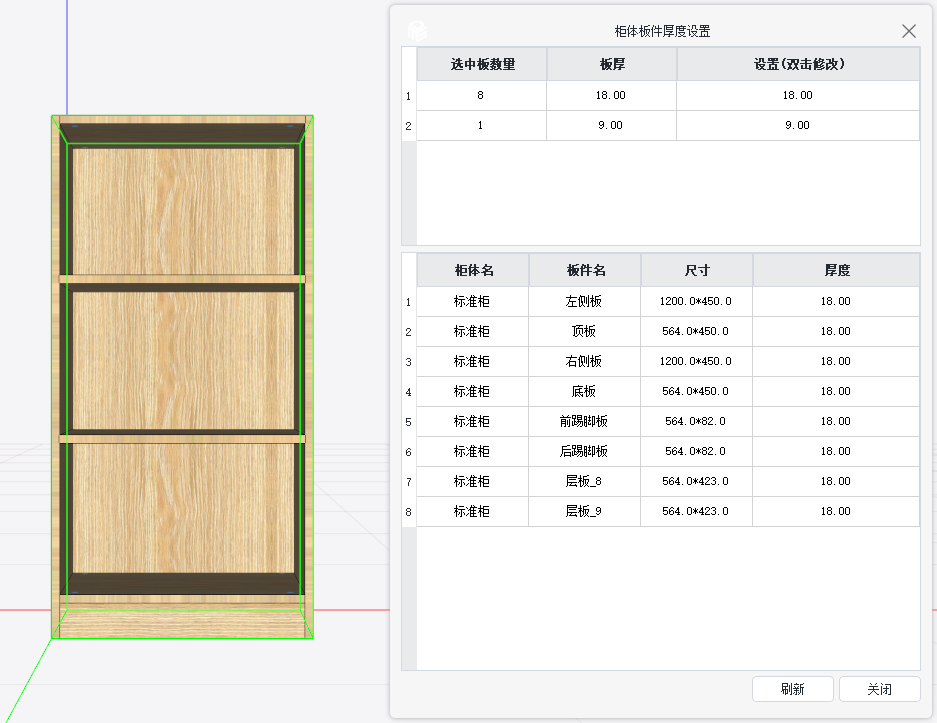 ①、支持柜体以及多个柜体的板件厚度修改