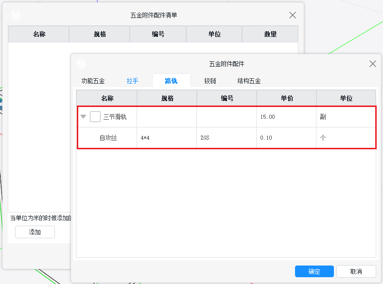 ②、可自由编辑五金的名称规格