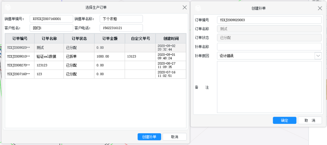 ①、创建补单可以直接选择销售单中的某个指定订单号