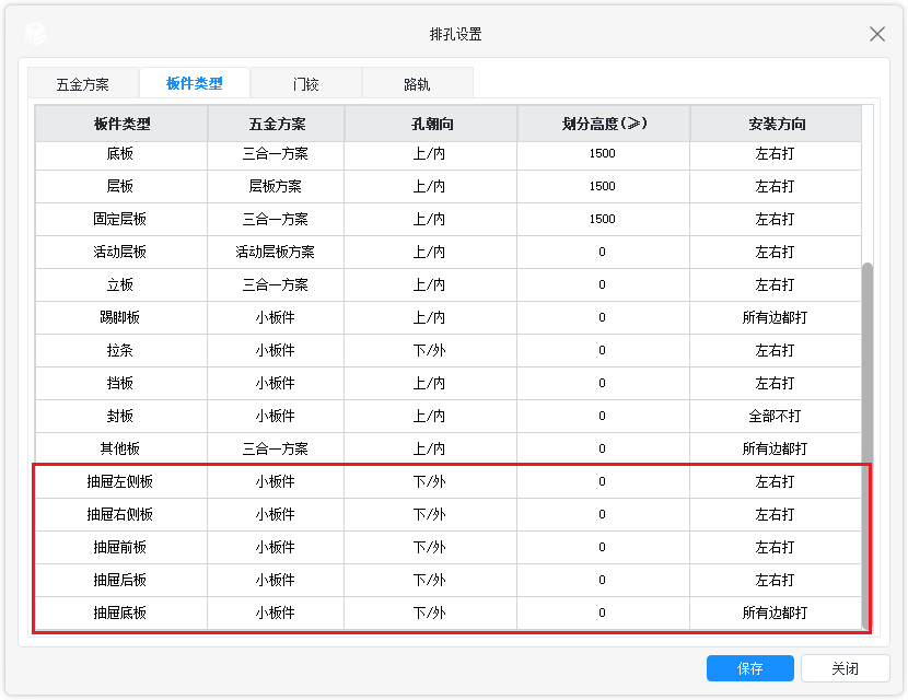 5、增加抽屉的板件类型