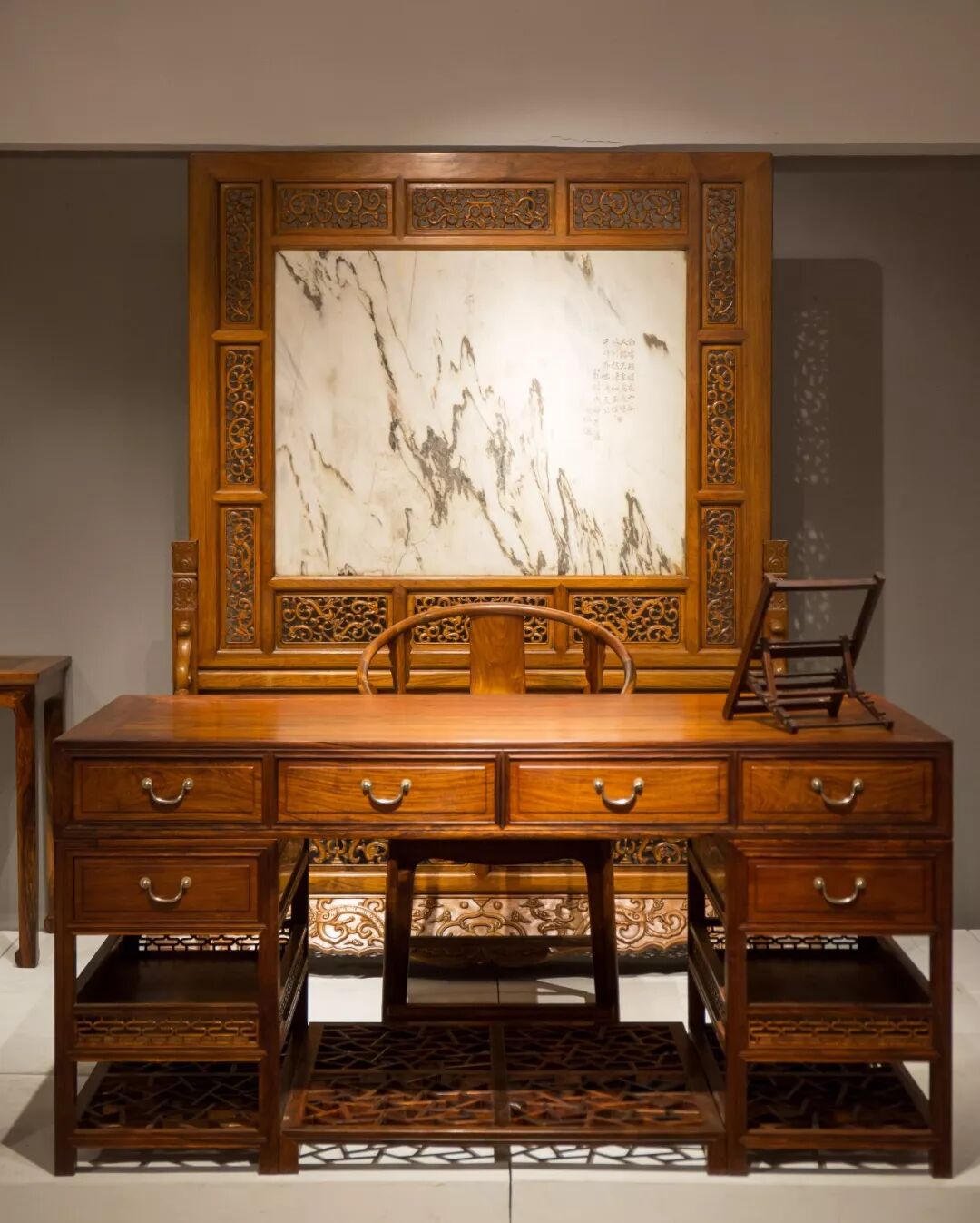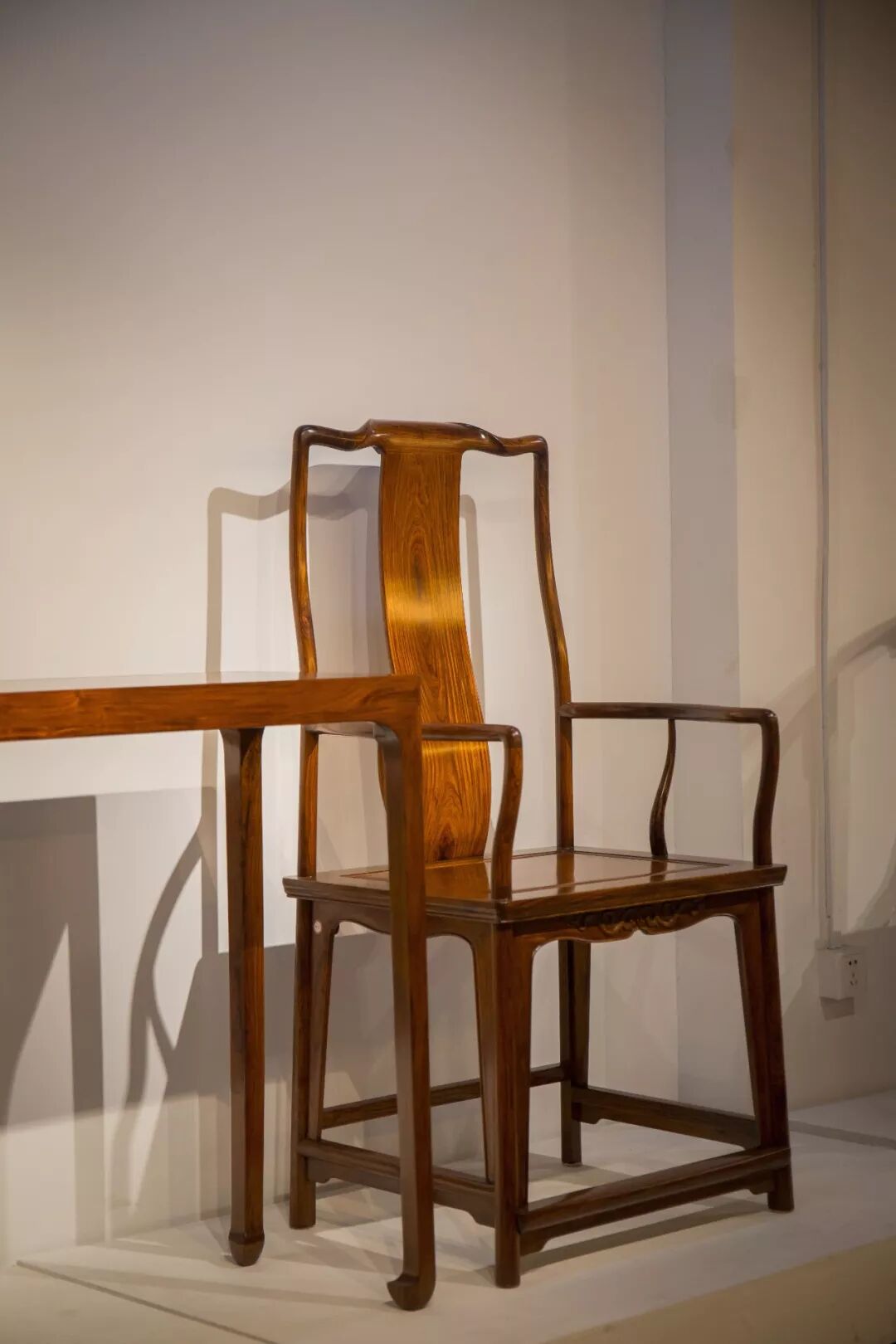 但在中国目前的经济形态下,一旦一个东西有利可图,就会有一堆人冲上来,做欺诈式行为。在木制家具收藏市场上,也有太多的设陷欺诈,大量造假的家具,贴皮、掺料,甚至还运用上了涂鸦...这也是此次展览的缘起。在全球数千件黄花梨藏品中,精心挑选百余件优秀藏品,坚持造型上的明式传统、坚信黄花梨明式家具收藏在保值升值方面的巨大潜力、坚定在多数人犹豫不决的价值洼地上深耕细作。希望从黄花梨材料的稀有价值,到黄花梨家具的艺术价值,再到黄花梨文化的人文价值,能让黄花梨为全社会所广知。让最好的家具,传承有序。一场古典家具的盛宴