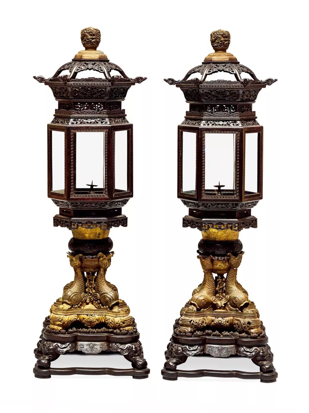 清乾隆 紫檀吐水金鱼座宫灯