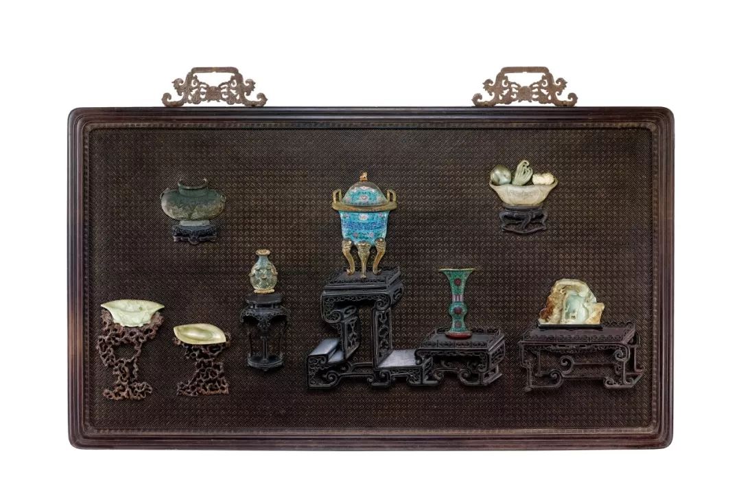 清乾隆 紫檀嵌掐丝珐琅海屋添筹纹宝瓶式座屏