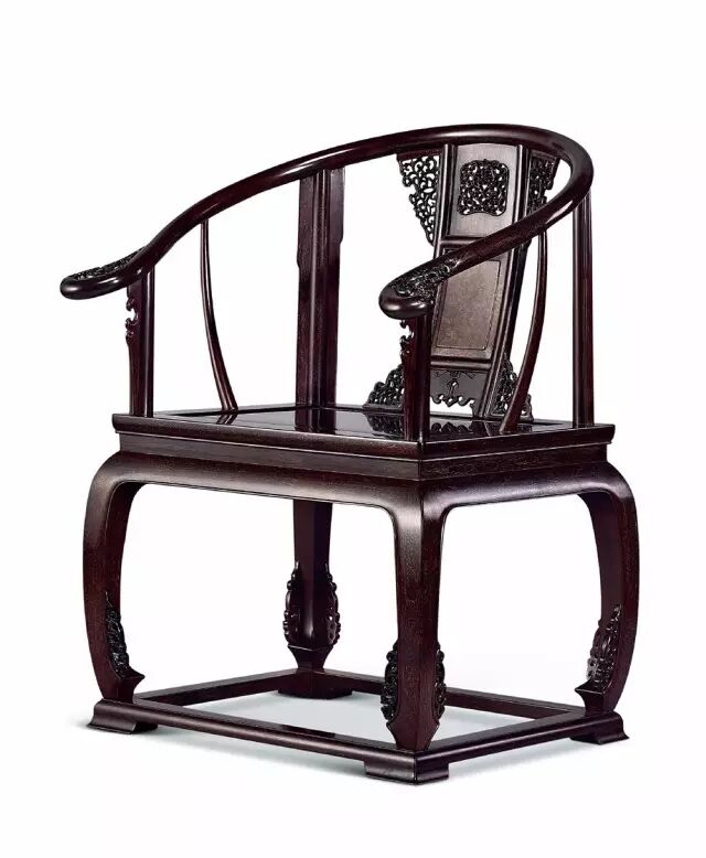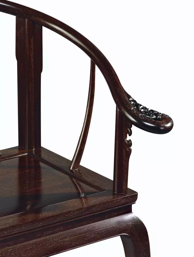 紫檀丝翎檀雕花鸟纹圈椅局部图