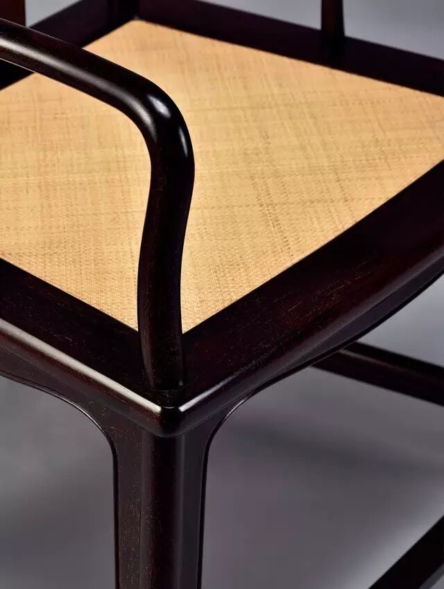 扇形座椅的造型端庄优雅,多是成对或成堂陈列在正厅,是家庭中的标志性的家具,在明清古典家具精品中便有传世的经典之作,款式一致,富高古气息和人文内涵,成堂摆放,品格高雅,颇具气势。如王世襄先生捐赠给上海博物馆的紫檀扇面形南官帽椅四具成堂。这类坐具曲线与曲面间的关系微妙,是很难成功把握的一个品种,此器的设计思想是:既要保留端庄凝重的古典韵味,又要融入了明快的现代气息,使之能和谐地陈放在现代生活环境中成为主导家具,传递和展示出设计师和使用者的品味和修养。