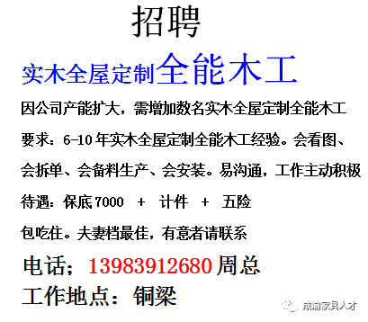 要会做中式家具!工资保底6500加计效工资1000-2000加计件