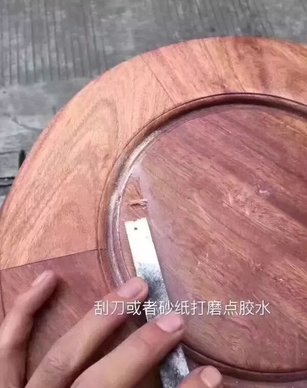刮刀刮或砂纸打磨点上的胶水: