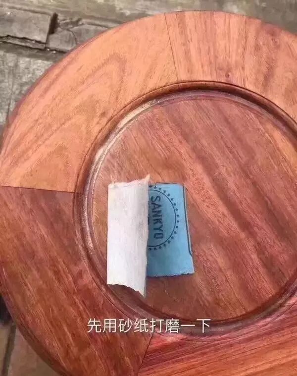 用砂纸打磨几下,其实就是利用砂纸打磨一些木粉,填充伤痕: