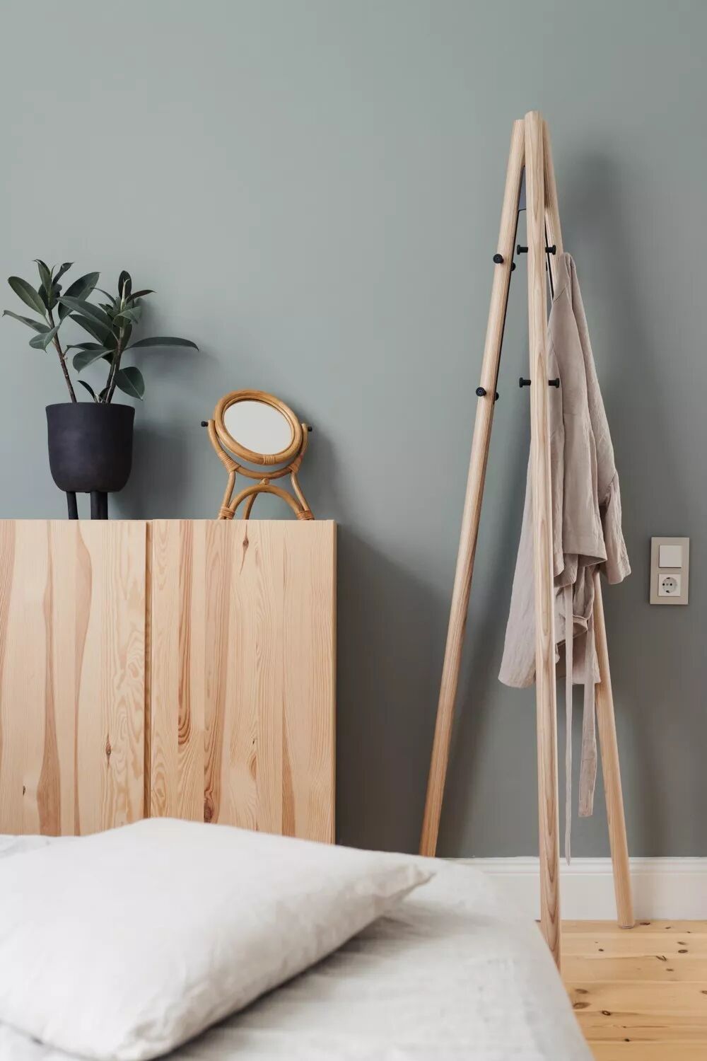 我们并不是非床尾凳不可,如果想在床附近收纳衣物,可以买一个小衣篓或者小篮子,放在床尾或者推到床下空间,不占地又很方便。