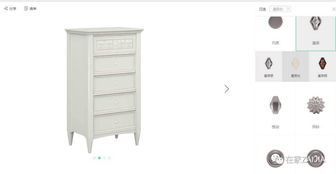 比如五屉斗柜,然后就可以从柜体、面板、抽屉面板、颜色、拉手等5个方向切入,设计自己的柜子了。