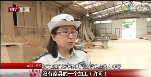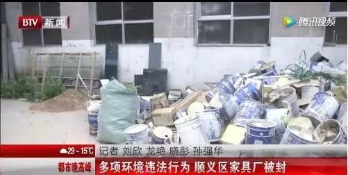 ▼5月8日,环保局对北京顺义区某家具厂进行环保检查