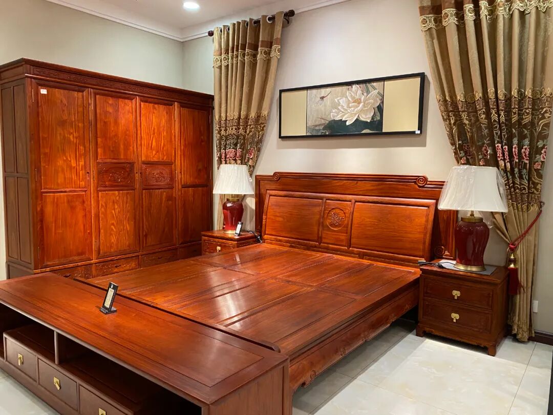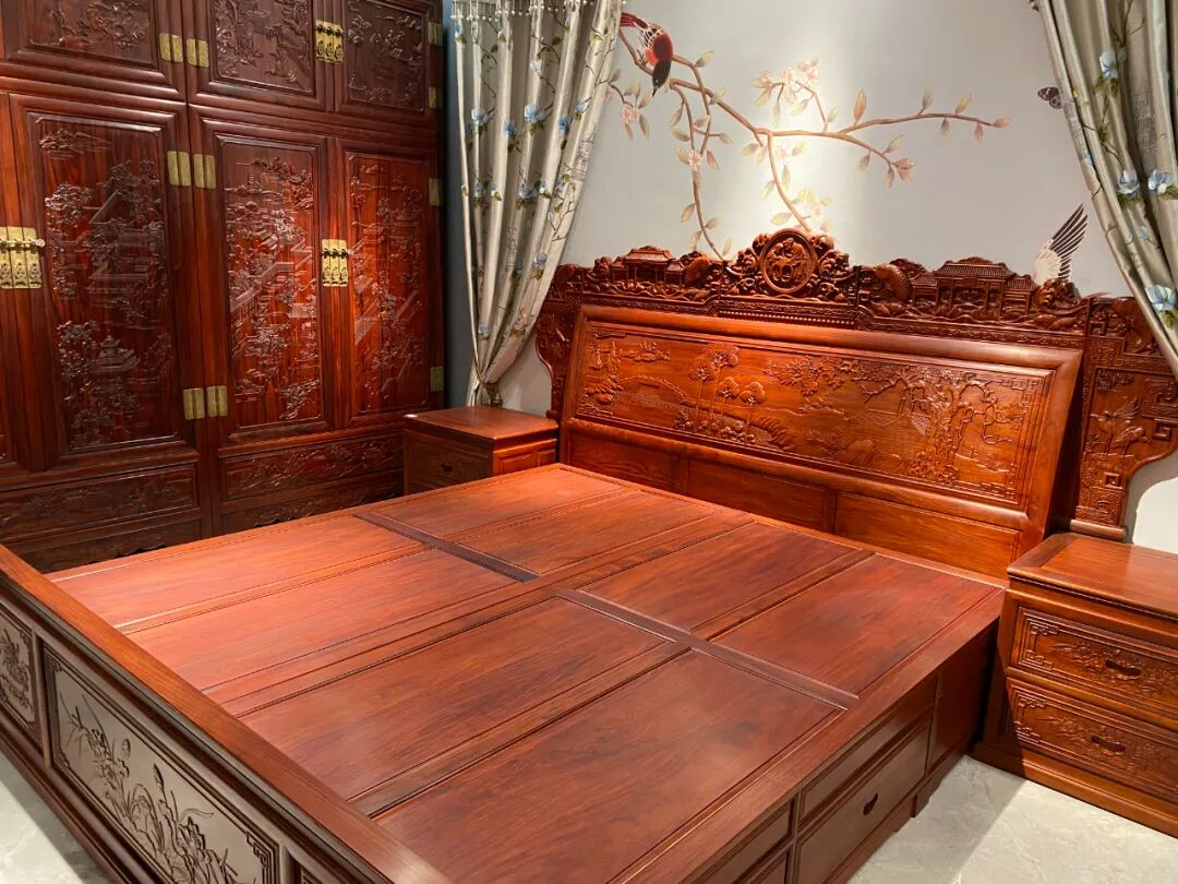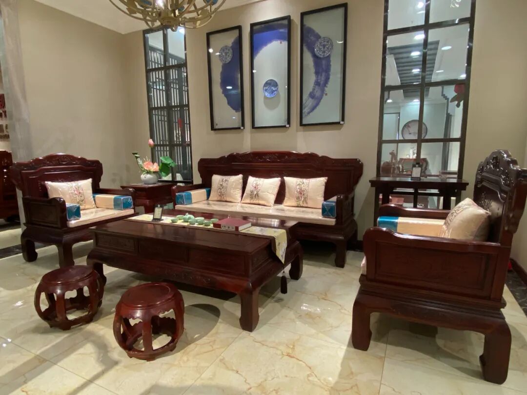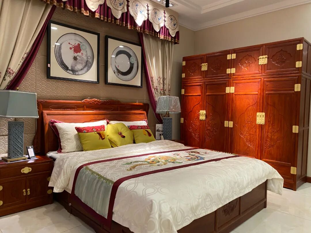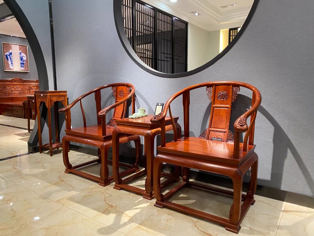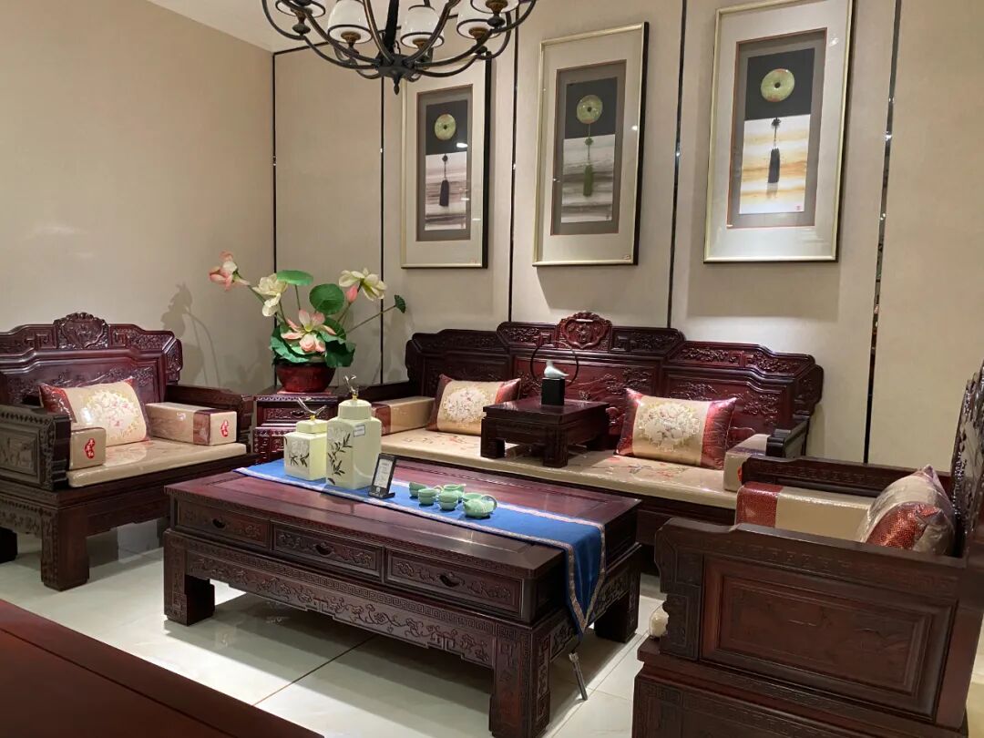 值得一提的是,年年红在制作家具的过程中,坚持不添加工业涂料,极大地保留住红木的香气,还原红木的原始之美。