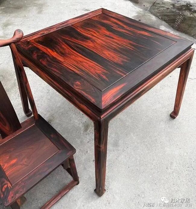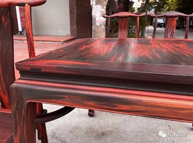 红木行业通常指大红酸枝一般讲的是老挝大红酸枝,老挝大红酸枝被公认为最好的酸枝木,俗称老红木。本图八仙桌椅,就是选用老挝大红酸枝黑飘红老料制作的,汇香阁红木馆厂价28000左右,厂家为了方便大家验货,以毛胚半成品展现给大家看,你可以用刀刮,用砂纸磨检验材质,有无拼补?有无白皮?