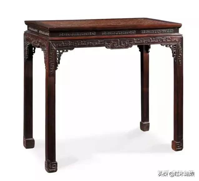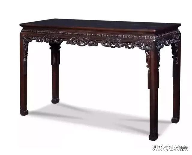 清代京作家具特点之一是清代则在桌案、椅凳、箱柜上普遍应用明代装饰翘头案的牙板和案足间的挡板的纹饰。