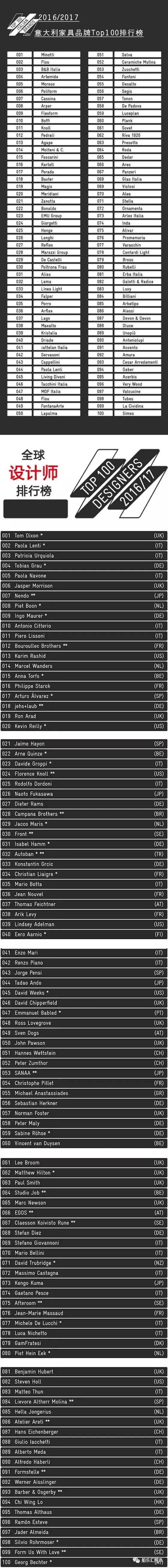 意大利家具品牌Top100排行榜