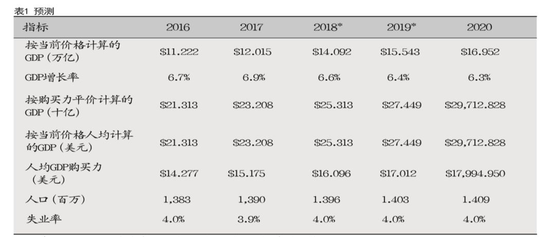 以当前价格计算的国内生产总值(GDP)来看,中国目前以12.015万亿美元的总量成为美国之后的全球第二大市场,而以购买力平价调整后的 GDP 来看,中国则凭借总量232.08亿美元的总量成为领导市场。2017年,中国的实际GDP增长率为6.9%,而IMF预测2018年预期增长率为6.6%。此外,根据中国国家财政策略,IMF预测2019年-2020年的增幅将继续小幅放缓,分别为+6.4%和+6.3%。