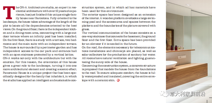 ON-A 建筑工作室是住宅建筑方面的专家,拥有超过 15 年的经验,刚刚在西班牙巴塞罗那附近完成了这座独特的独户住宅完全面向景观,房子利用了长度绘制以定位所有面向最佳的风景。在一楼,有独立的厨房和餐厅区,与安装了无边泳池的大型户外露台相连。